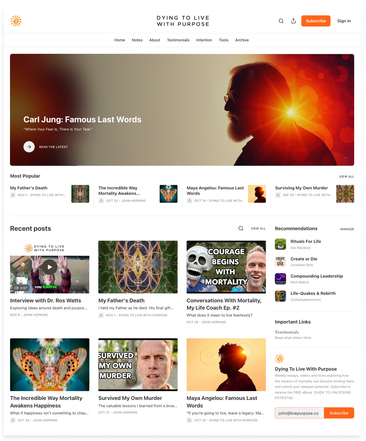 Latest video: What Is Purpose? Conversations with Mortality