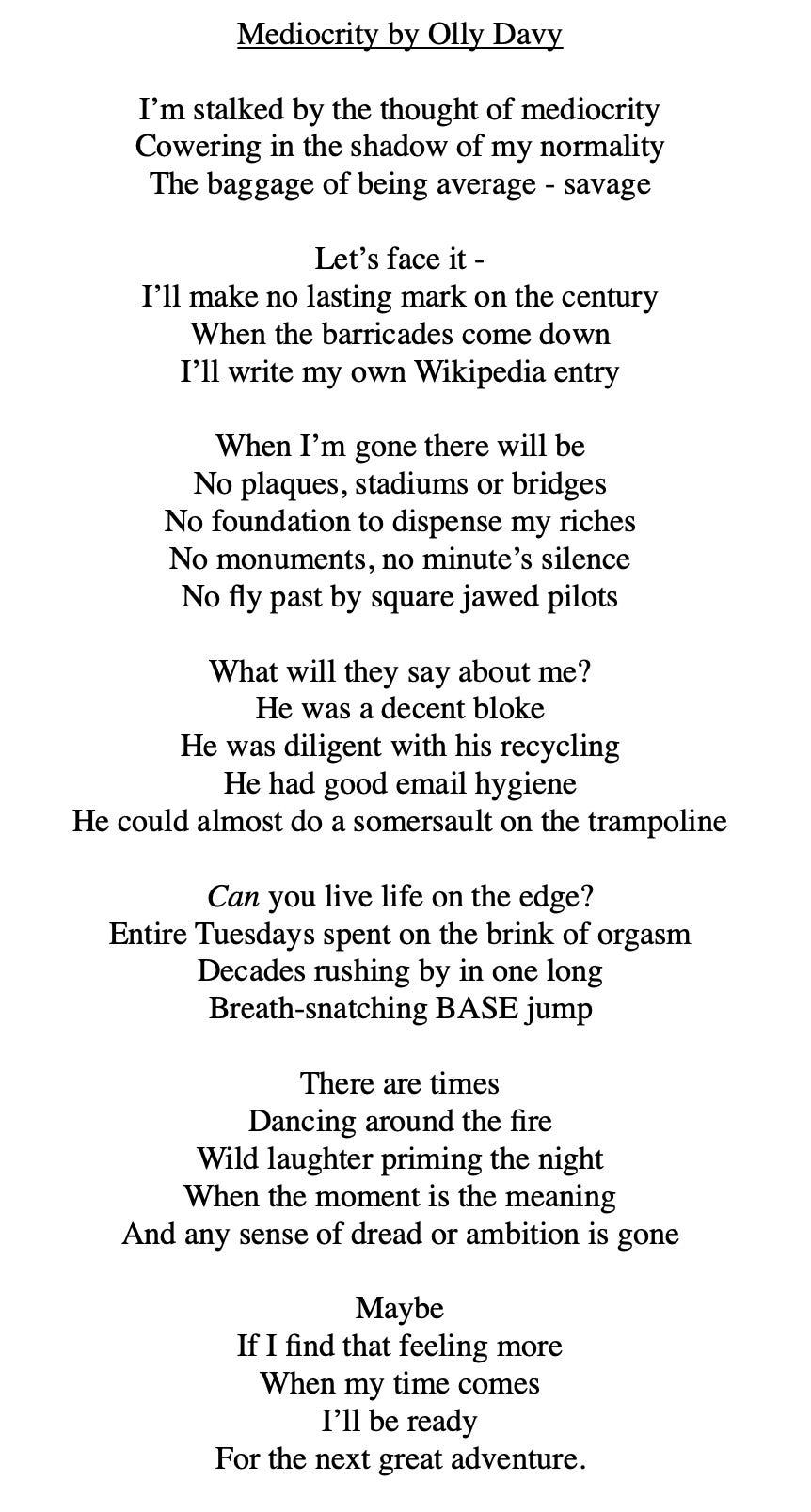 Creative Collaboration: Olly Davy - a poet and facilitator who helps people find their voice and tell their stories. Olly runs Dirty Laundry, a live poetry and storytelling platform, alongside workshops for businesses and teams. Find out more: ollydavy.com
