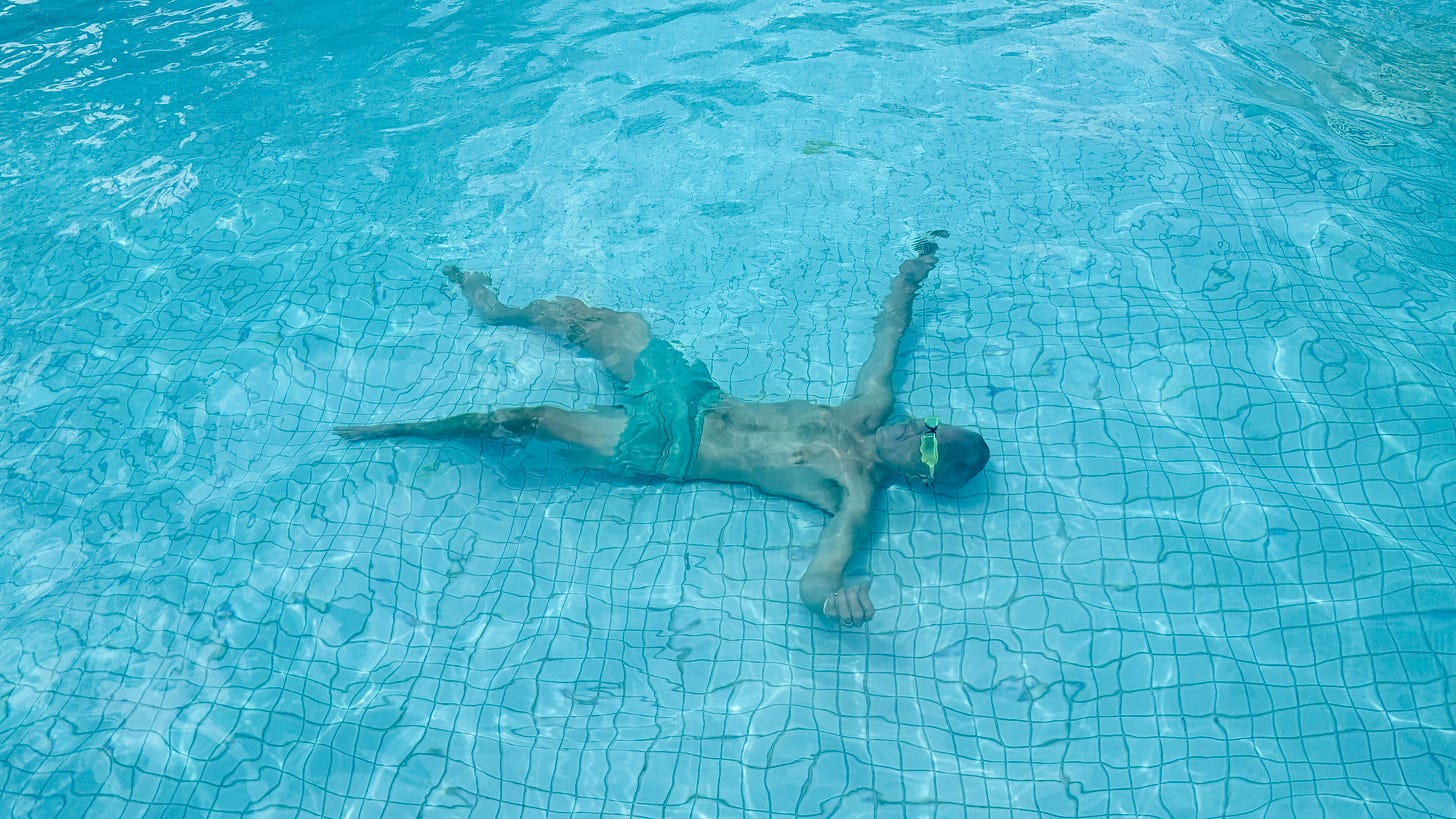 I sink to the bottom. Roll onto my back. And stay there for as long as I can hold my breath. It’s my new favourite mini-meditation.